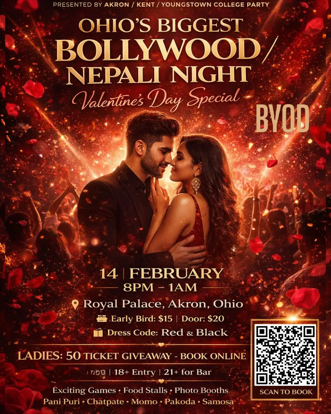 Get ready for the most electrifying Valentine’s celebration in Ohio! Ohio’s Biggest Bollywood & Nepali Night brings together the vibrant energy of Bollywood beats and the soulful rhythms of Nepali music for one unforgettable night. Celebrate love, music, and culture with high-energy DJs, dazzling lights, and nonstop dancing. Whether you’re coming with your partner, friends, […]